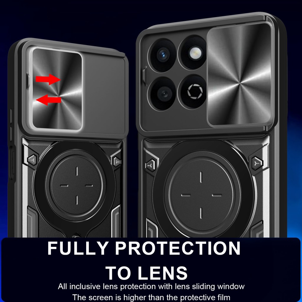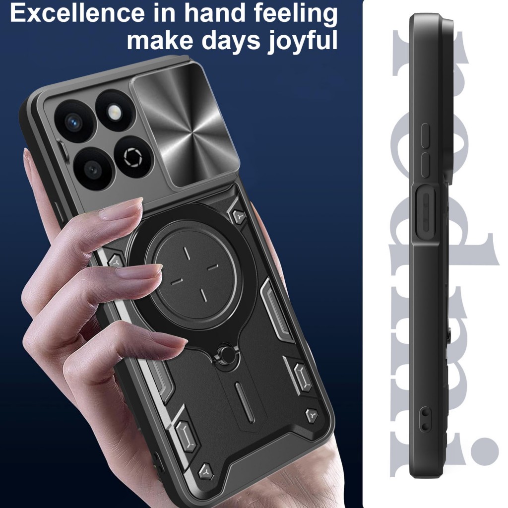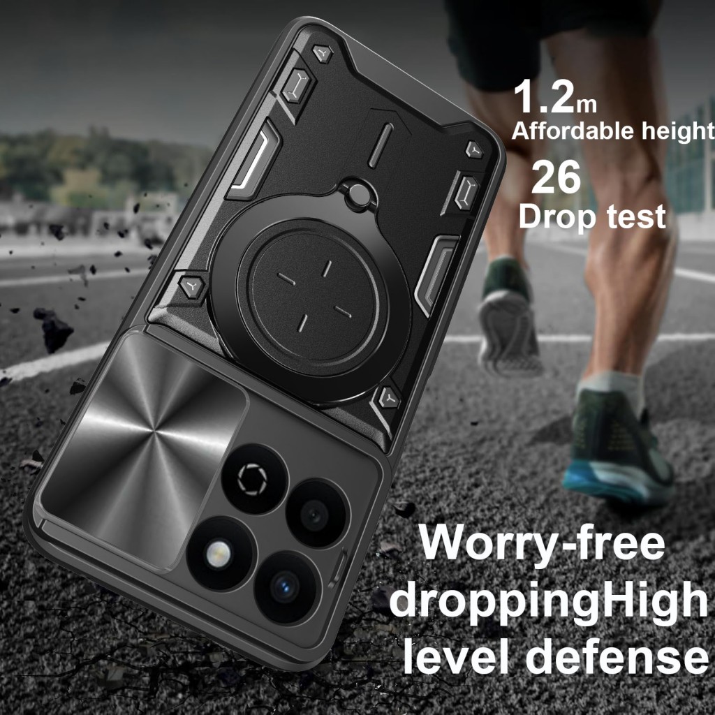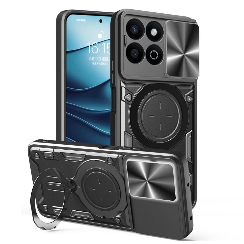 قاب محافظ مخصوص گوشی Honor X7c با طراحی مقاوم و چندلایه، انتخابی ایدهآل برای کاربرانی است که هم به امنیت گوشی اهمیت میدهند و هم به ظاهر خاص و مدرن. این قاب با استفاده از ترکیبی از مواد با کیفیت بالا از جمله TPU نرم، شاسی پشتی PC مقاوم، صفحه فلزی مغناطیسی و پوشش مات با طرح CD، محافظتی چندبعدی و بادوام ارائه میدهد. لایهی فلزی مرکزی با قابلیت جذب مغناطیسی، این قاب را برای اتصال به نگهدارندههای خودرو کاملاً مناسب کرده است. پایهی فلزی پشت قاب با قابلیت چرخش ۳۶۰ درجه و خم شدن ۹۰ درجه، گوشی را به راحتی در زاویه دلخواه نگه میدارد و برای تماشای ویدئو، تماس تصویری یا کارهای روزمره کاملاً کاربردی است. محافظ دوربین کشویی با پوشش آلومینیومی نهتنها ظاهری جذاب به قاب میبخشد، بلکه در حالت بسته از لنزها در برابر خط و خش و نور مزاحم محافظت میکند. این قاب همچنین دارای طراحی ضدلغزش بوده و در دست گرفتن آن احساس استحکام و اطمینان را القا میکند. از قابلیتهای دیگر این قاب میتوان به امکان روشنشدن چراغ اعلان هنگام تماس ورودی، پشتیبانی از عملکرد روزمره با ایمنی بالا و دسترسی آسان به دکمهها اشاره کرد. بستهبندی اورجینال و کیفیت ساخت حرفهای، محافظی مطمئن برای Honor X7c شماست که استایل صنعتی و کارآمد را با هم ترکیب میکند