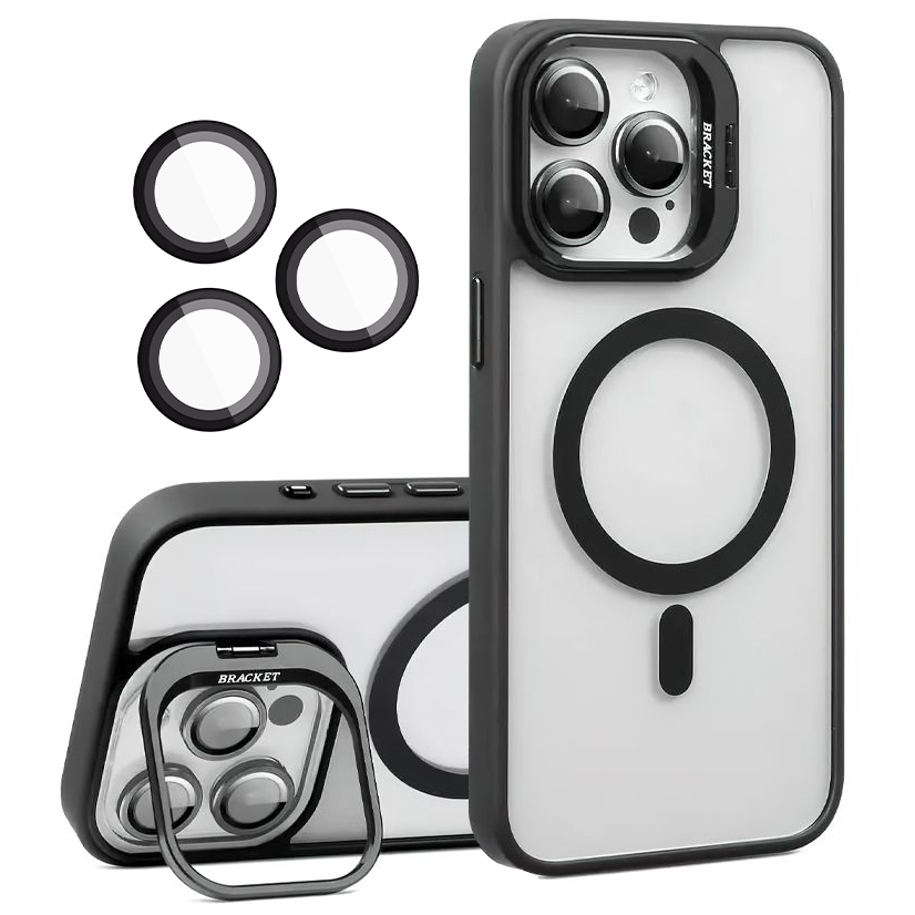 قاب مدل Bracket محصول جدید می باشد. این کاور علاوه بر ظاهر جذاب از کارآیی مناسبی نیز برخوردار می باشد. این کاور در قسمت دوربین دارای یک براکت می باشد که قابلیت تبدیل شدن به استند برای تماشای محتوای تصویری را به کاور اضافه می کند. همچنین این کاور از تمام محصولات Magsafe پشتیبانی می کند. این کاور به همراه محافظ دوربین رینگی همرنگ با کاور عرضه می شود.