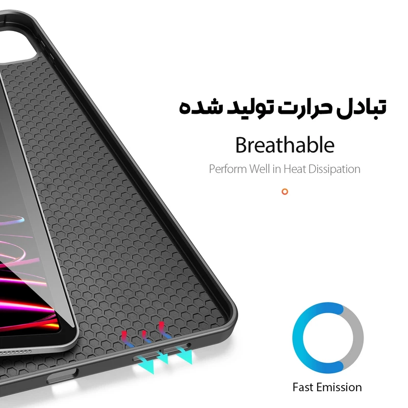 کیف مدل Domo محصول جدید مناسب برای تبلت Apple iPad Pro 11 2020 /2021/2022 می باشد. این کیف یک محافظ کامل برای این تبلت می باشد. که علاوه بر زیبایی مقاومت و استحکام بسیار بالایی در برابر ضربه و زمین خوردن دارد. در این کیف بصورت هوشمند می باشد که با باز و بسته کردن در صفحه نمایش بصورت خودکار خاموش و روشن می شود. همچنین استند چند حالته این کیف امکان قرار گرفتن تبلت در زوایای مختلف را فراهم می کند.