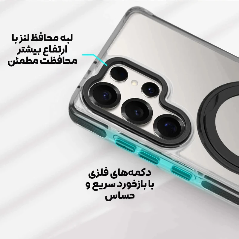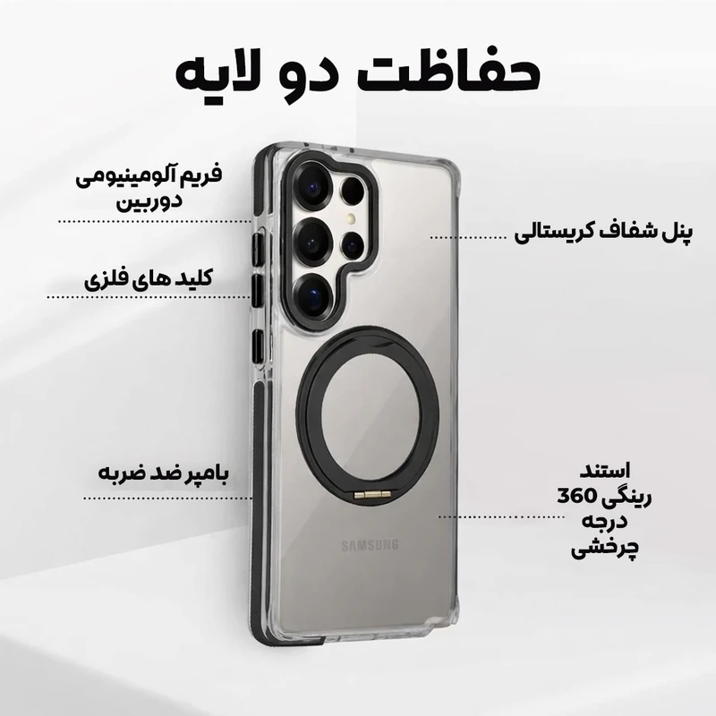قاب Fusion ترکیبی هوشمند از طراحی شفاف مدرن و محافظت حرفهای است که برای کاربرانی ساخته شده که هم ظاهر گوشی برایشان مهم است و هم امنیت آن؛ این قاب با پنل پشتی کریستالی، زیبایی اصلی دستگاه را کاملاً نمایش میدهد و در عین حال به لطف فریم تقویتشده و بامپر ضربهگیر، از لبهها و گوشهها در برابر سقوط و ضربه محافظت میکند. حلقه فلزی 360 درجه تعبیهشده در پشت قاب علاوه بر سازگاری کامل با شارژرها و هولدرهای مگنتی، نقش یک استند قدرتمند را نیز ایفا میکند تا بتوانید گوشی را به صورت عمودی یا افقی با ثبات کامل روی میز قرار دهید؛ چه در حال تماشای ویدئو باشید، چه تماس تصویری یا کار روزمره. فریم برجسته اطراف دوربین با طراحی دقیق، از لنزها در برابر خط و خش و تماس مستقیم با سطح محافظت میکند و دکمههای فلزی با بازخورد سریع و نرم، تجربه فشردن دقیق و لذتبخشی را فراهم میسازند. بافت ضدلغزش کنارهها باعث میشود گوشی با اطمینان بیشتری در دست قرار بگیرد و احتمال سر خوردن کاهش یابد. این قاب انتخابی ایدهآل برای کسانی است که یک محصول شفاف اما مقاوم، مجهز به استند چرخشی و مگنت قدرتمند میخواهند تا بدون افزایش حجم اضافی، حداکثر کارایی و محافظت را در کنار استایل حرفهای تجربه کنند.
