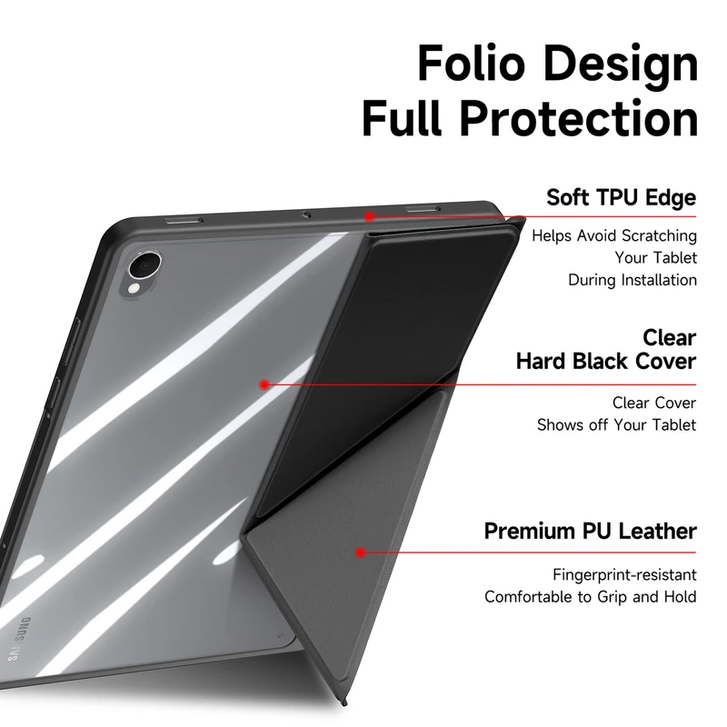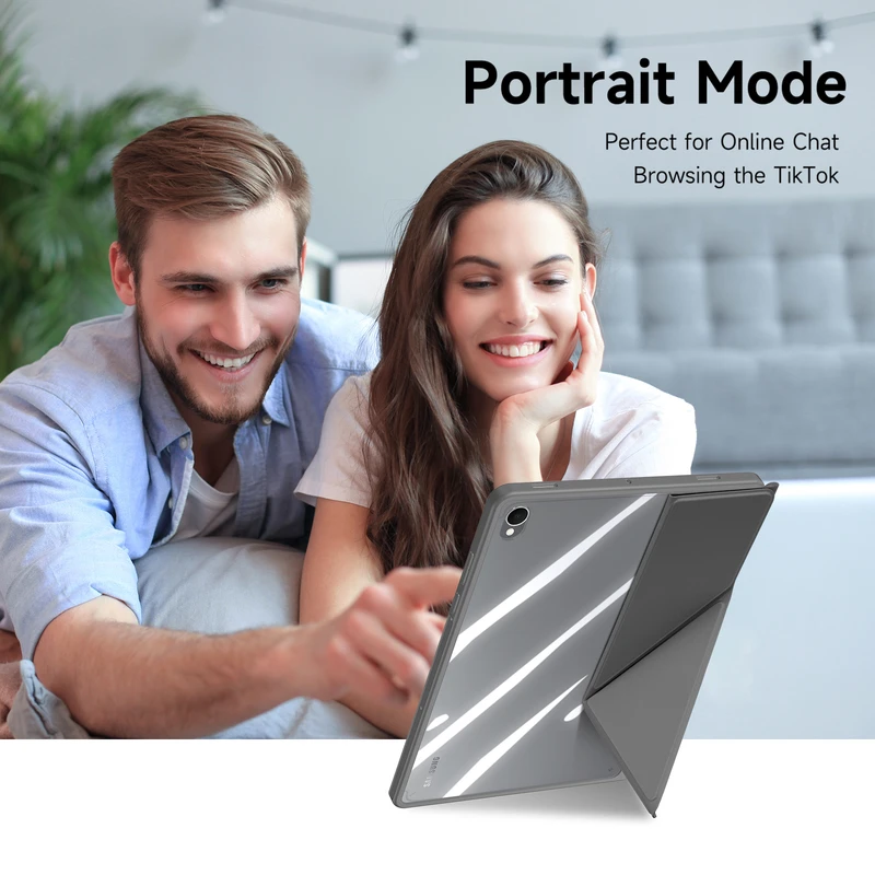 کیف کلاسوری مدل Magi برای تبلت Samsung S11 11 inch ترکیبی از طراحی هوشمند، محافظت کامل و کاربری چندمنظوره را ارائه میدهد که آن را به یکی از بهترین گزینهها برای کاربران حرفهای و روزمره تبدیل کرده است. این کیف با بهرهگیری از ساختار سهلایه شامل لبههای نرم TPU، پشت شفاف سخت و روکش چرمی ضد اثر انگشت، هم زیبایی تبلت را حفظ میکند و هم از آن در برابر ضربه، خط و خش و سقوط محافظت مینماید. قابلیت "Smart Folio" باعث روشن و خاموش شدن خودکار صفحه با باز و بسته کردن درب کیف میشود، بدون نیاز به لمس دکمه پاور، که هم راحتی را افزایش میدهد و هم مصرف باتری را کاهش میدهد. طراحی ماژولار این کیف امکان جداسازی آسان کاور پشتی را فراهم کرده و میتوان آن را بهصورت مستقل استفاده کرد؛ همچنین اتصال مجدد آن با مکانیزم دقیق "Align & Push" انجام میشود که ترکیبی محکم و ایمن را تضمین میکند. از طرفی، قابلیت تنظیم زاویه در حالتهای مختلف ایستاده—اعم از عمودی، افقی، ۳۰ و ۷۰ درجه—تجربهای بینظیر برای تماشای فیلم، مطالعه یا تماس تصویری فراهم میآورد. این کیف نهتنها محافظی قدرتمند برای تبلت شماست، بلکه با طراحی خلاقانه و عملکرد چندگانه، به ابزاری کاربردی و شیک برای زندگی دیجیتال روزمره تبدیل میشود.