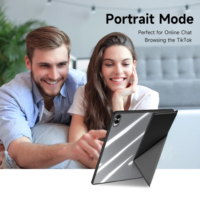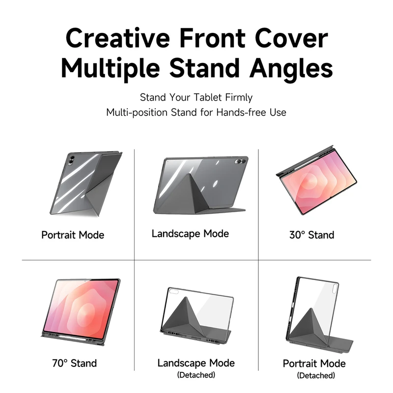 کیف کلاسوری مدل Magi برای تبلت Samsung S11 Ultra 14.6 inch ترکیبی از طراحی هوشمند، محافظت کامل و کاربری چندمنظوره را ارائه میدهد که آن را به یکی از بهترین گزینهها برای کاربران حرفهای و روزمره تبدیل کرده است. این کیف با بهرهگیری از ساختار سهلایه شامل لبههای نرم TPU، پشت شفاف سخت و روکش چرمی ضد اثر انگشت، هم زیبایی تبلت را حفظ میکند و هم از آن در برابر ضربه، خط و خش و سقوط محافظت مینماید. قابلیت "Smart Folio" باعث روشن و خاموش شدن خودکار صفحه با باز و بسته کردن درب کیف میشود، بدون نیاز به لمس دکمه پاور، که هم راحتی را افزایش میدهد و هم مصرف باتری را کاهش میدهد. طراحی ماژولار این کیف امکان جداسازی آسان کاور پشتی را فراهم کرده و میتوان آن را بهصورت مستقل استفاده کرد؛ همچنین اتصال مجدد آن با مکانیزم دقیق "Align & Push" انجام میشود که ترکیبی محکم و ایمن را تضمین میکند. از طرفی، قابلیت تنظیم زاویه در حالتهای مختلف ایستاده—اعم از عمودی، افقی، ۳۰ و ۷۰ درجه—تجربهای بینظیر برای تماشای فیلم، مطالعه یا تماس تصویری فراهم میآورد. این کیف نهتنها محافظی قدرتمند برای تبلت شماست، بلکه با طراحی خلاقانه و عملکرد چندگانه، به ابزاری کاربردی و شیک برای زندگی دیجیتال روزمره تبدیل میشود.