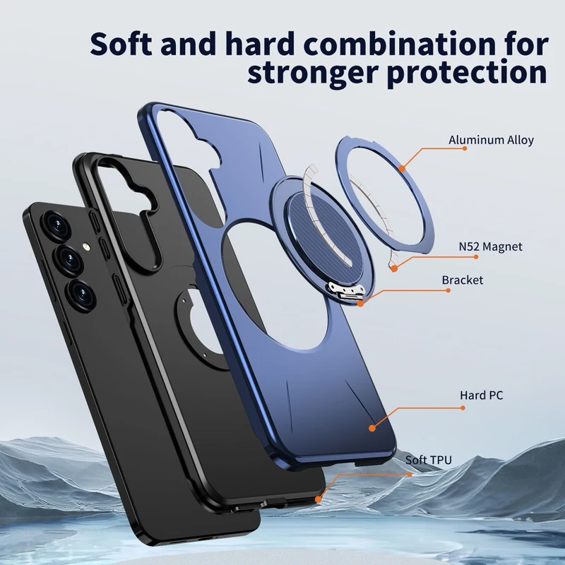 کاور RingStand یکی از جدیدترین و حرفهایترین قابهای محافظ برند است که با طراحی مدرن و امکانات چندکاره، تجربهای متفاوت از محافظت و استفاده روزمره را ارائه میدهد. این قاب با ترکیب متریال مقاوم Soft TPU و Hard PC ساخته شده تا هم انعطافپذیری لازم برای نصب آسان داشته باشد و هم در برابر ضربه و سقوطهای شدید تا استاندارد 16FT و بیش از 5000 تست سقوط مقاومت فوقالعادهای نشان دهد. ویژگی اصلی RingStand وجود حلقه مغناطیسی قدرتمند N52 به همراه پایه فلزی تاشو است که امکان استفاده از گوشی در حالت استند با زاویه حدود 120 درجه را فراهم میکند و برای تماشای ویدیو، تماس تصویری، کار اداری یا استفاده بدون دخالت دست کاملاً ایدهآل است. همچنین طراحی دقیق لبههای برجسته 1.5 میلیمتری از صفحهنمایش و دوربین محافظت کرده و امنیت بیشتری در استفاده روزانه ایجاد میکند. سازگاری کامل با انواع اکسسوریهای مغناطیسی مانند هولدر خودرو نیز از دیگر مزیتهای مهم این مدل است. اگر به دنبال یک قاب شیک، مقاوم، کاربردی و متفاوت هستید، RingStand انتخابی بینقص برای سبک زندگی مدرن خواهد بود.