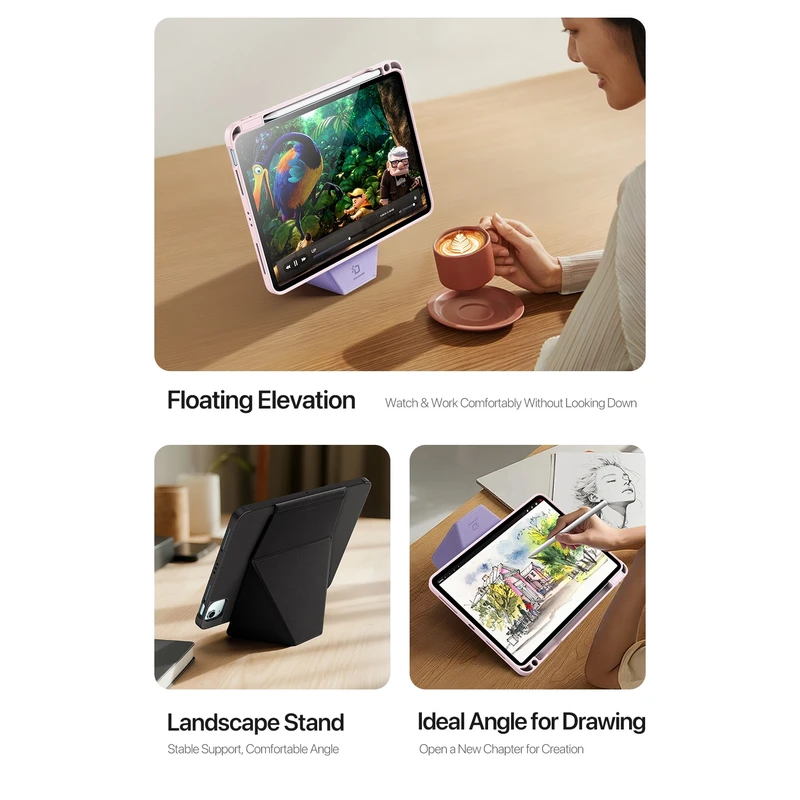 کیف کلاسوری مدل Vers برای iPad Air 7 / 6 / 5 / 4 11 , iPad Pro 11 inch 2022 ، ترکیبی از طراحی مدرن و کارایی چندمنظوره است. ساختار هوشمند آن با قابلیت تبدیل به پایه در حالتهای عمودی، افقی، شناور و زاویه مناسب برای طراحی، تجربهای راحت و پایدار در استفاده روزمره فراهم میکند. مکانیزم Auto Wake/Sleep بهصورت خودکار مصرف انرژی را کاهش داده و عمر باتری را افزایش میدهد، در حالی که پوشش مقاوم و سبک، محافظت کامل در برابر ضربه و خطوخش ارائه میدهد. این محصول، انتخابی ایدهآل برای کار، مطالعه، تماشای فیلم و خلق آثار هنری است.