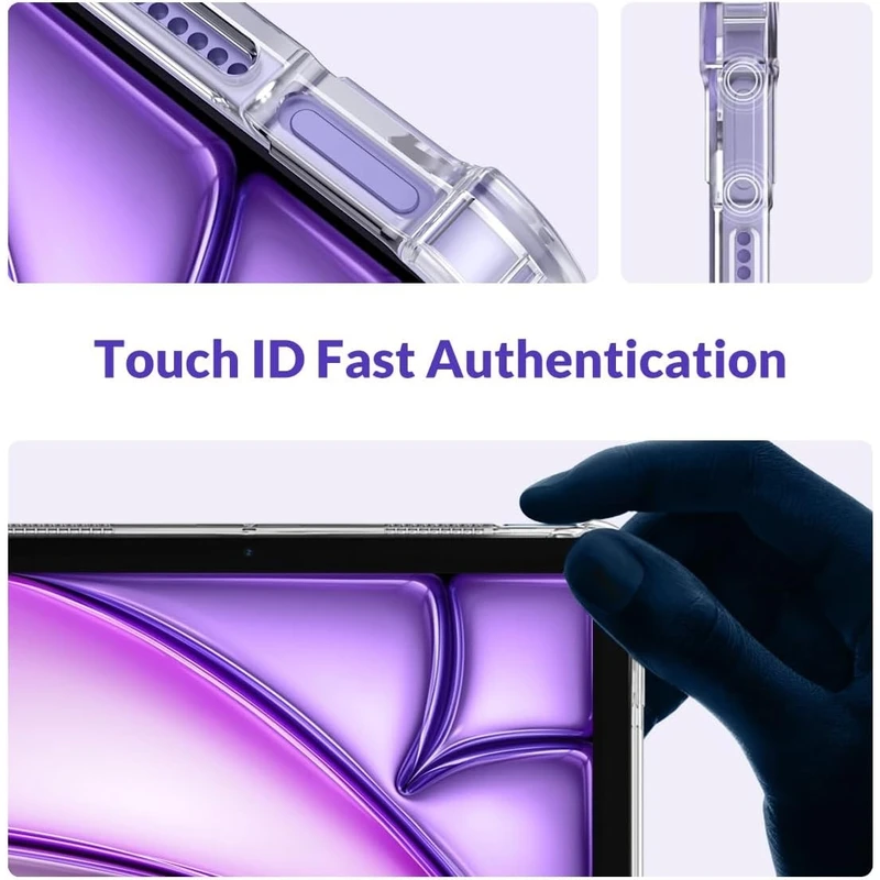 قاب شفاف مخصوص آیپد، ترکیبی از طراحی مینیمال و محافظت حرفهای است. این قاب از جنس TPU شفاف و باکیفیت ساخته شده که علاوه بر نمایش کامل رنگ و زیبایی بدنهی آیپد، انعطافپذیری فوقالعادهای نیز دارد. ساختار ضربهگیر در چهار گوشه، بهویژه در برابر سقوطهای ناگهانی یا برخوردهای شدید، از آسیب به دستگاه جلوگیری میکند. طراحی دقیق و ظریف، باعث شده تا دکمهها، پورتها و اسپیکرها بهراحتی در دسترس باشند. این قاب با لبههای کمی برجسته، از لنز دوربین و صفحهنمایش در برابر خط و خش محافظت میکند، بدون آنکه ضخامت اضافی ایجاد کند.