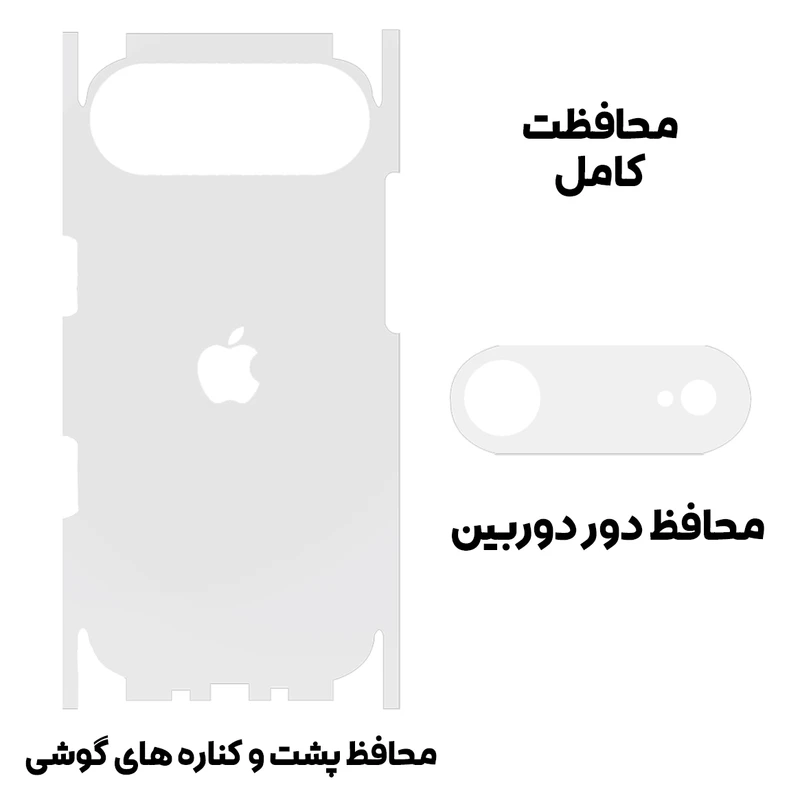 محافظ پشت گوشی iPhone 17 Air علاوه بر محافظت از پشت گوشی حاشیه کنار دوربین، کناره های گوشی، بالا و پایین گوشی را هم پوشش می دهد. این محافظت برای سازگاری بیشتر با پشت گوشی به صورت مات تولید شده است.
